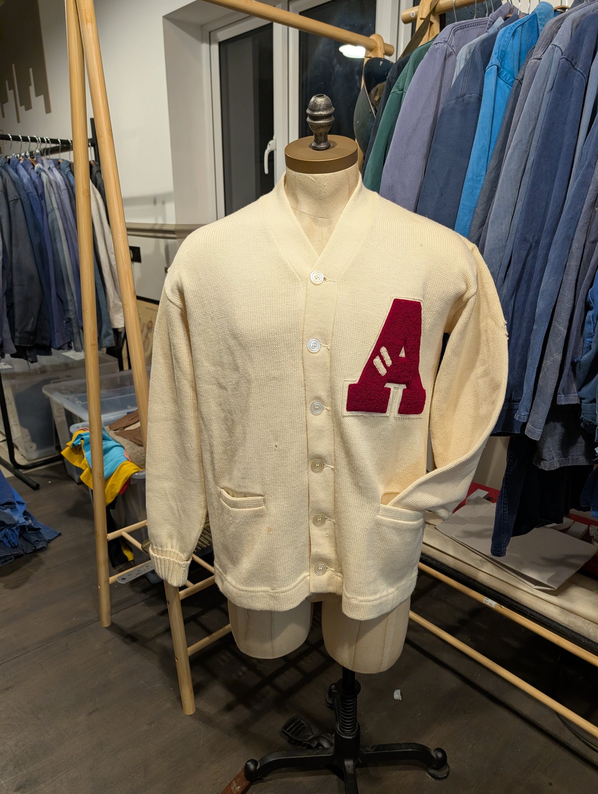 This 1950s letterman cardigan by Sands offers a classic and timeless style. Crafted with high quality materials, this size large cardigan provides both comfort and durability. Perfect for any occasion, it is a must-have for any wardrobe.