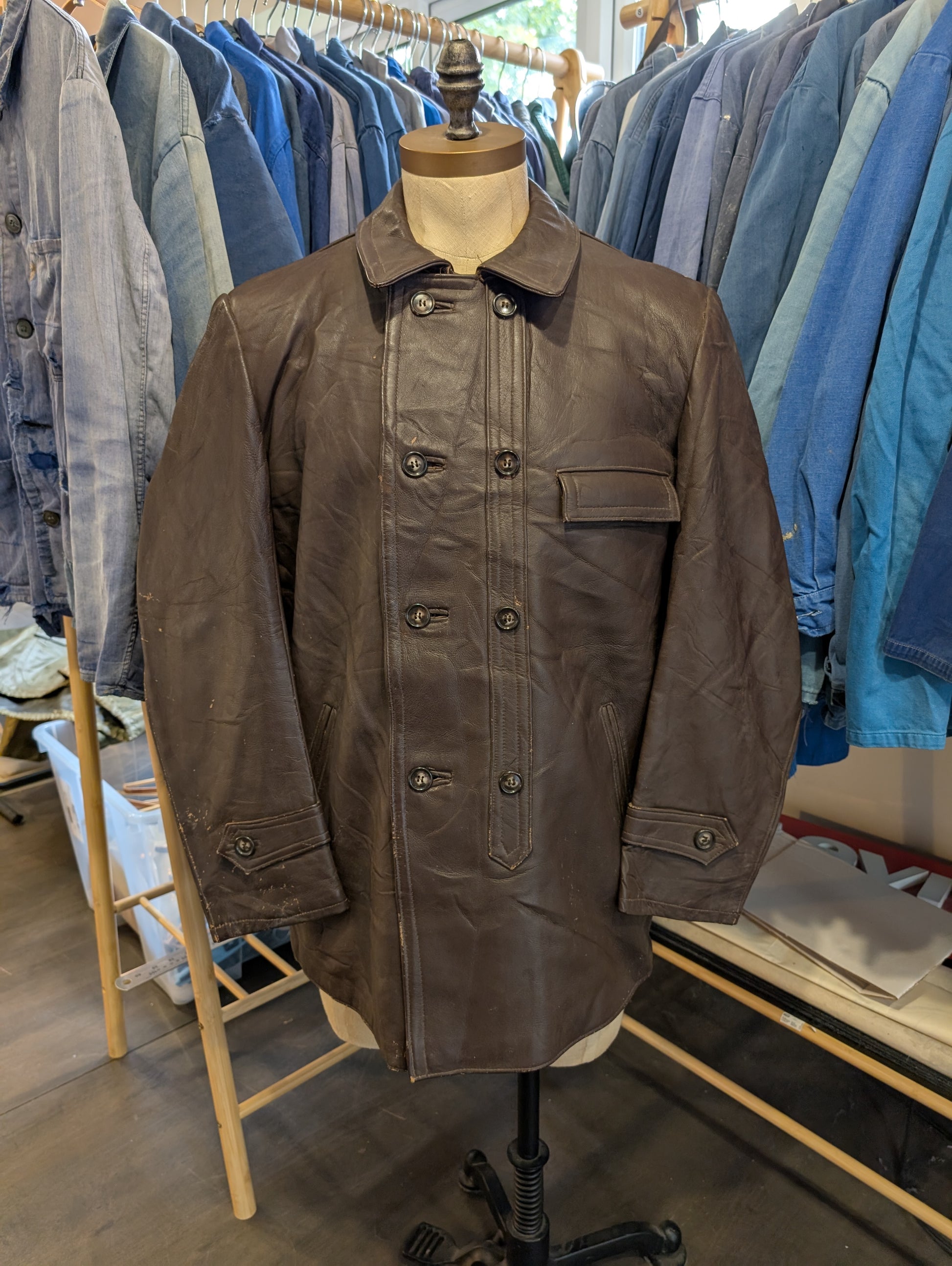 1960s French pompier style leather jacket