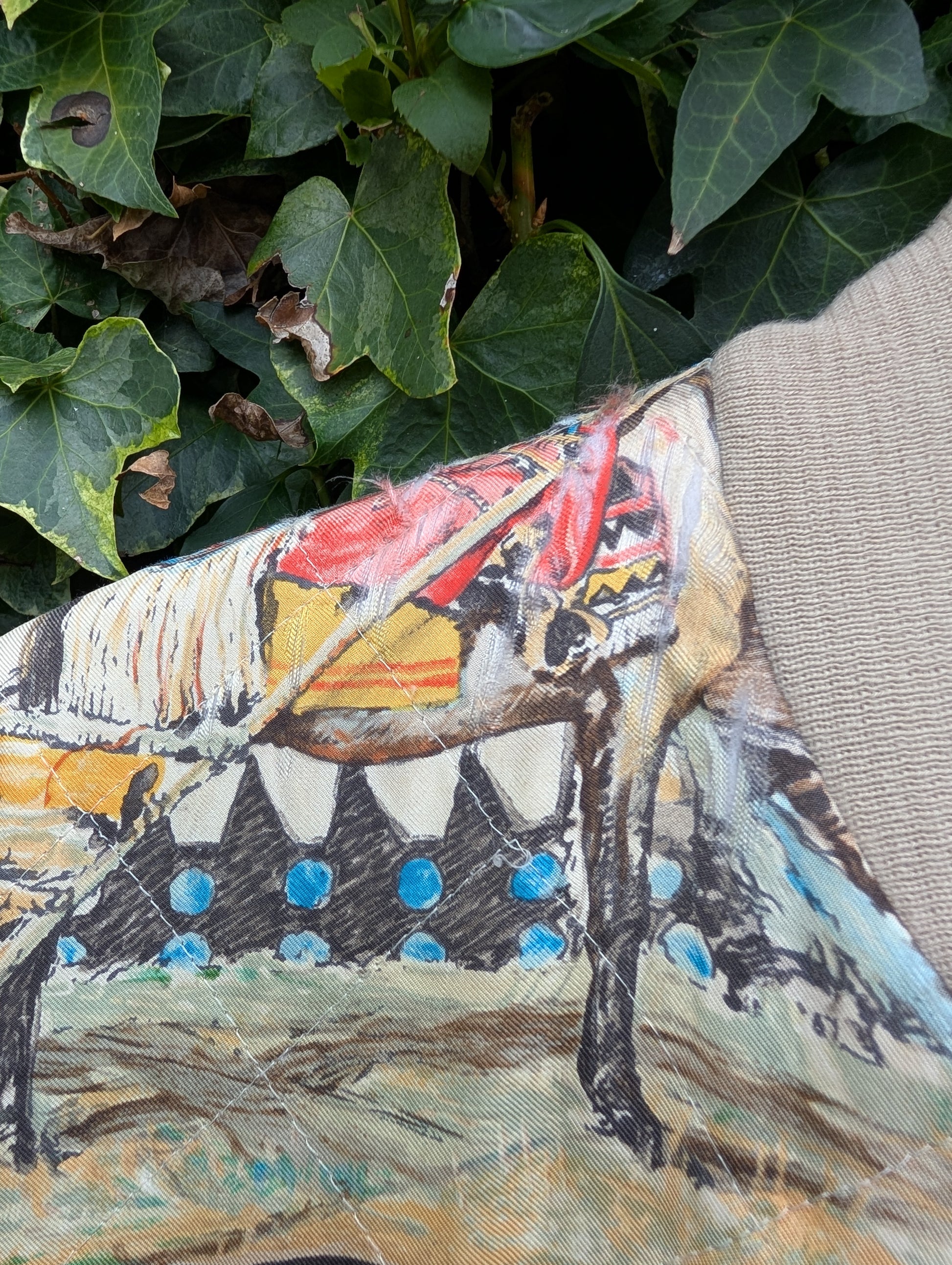 Own a piece of fashion history with this rare 1980's Hermes silk reversible bomber jacket. Made with high quality materials and expert craftsmanship, this jacket is the perfect addition to any fashionista's wardrobe. With its reversible feature, you can effortlessly switch up your look. Only available in XL.