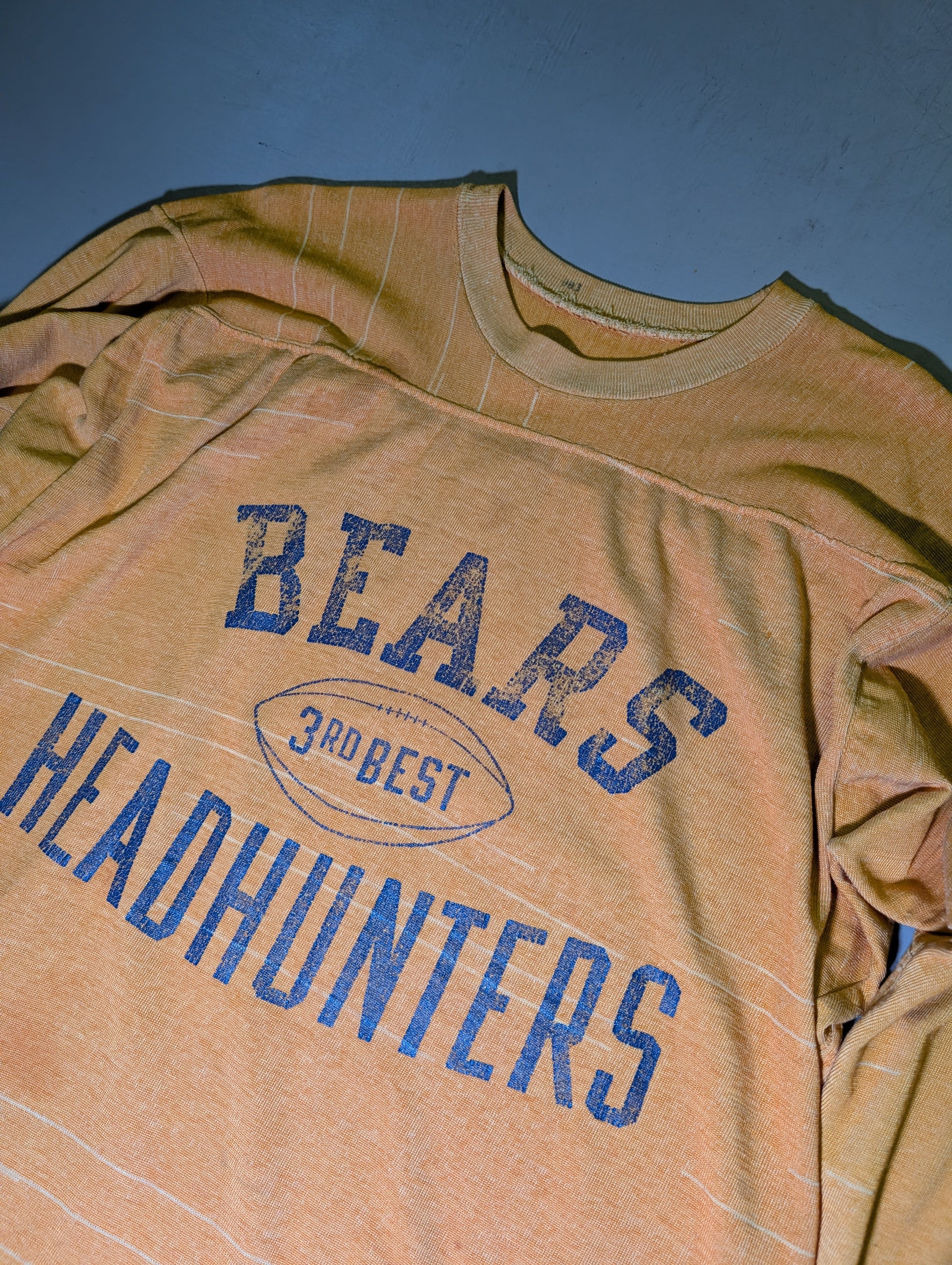 The Bears Headhunters Jersey from the 1950s, available in large, is a historical sports garment made from durable materials. This jersey reflects the design and craftsmanship of mid-20th century sports attire, offering a nostalgic connection to the era. Ideal for collectors and sports enthusiasts alike, it captures a significant piece of athletic history.