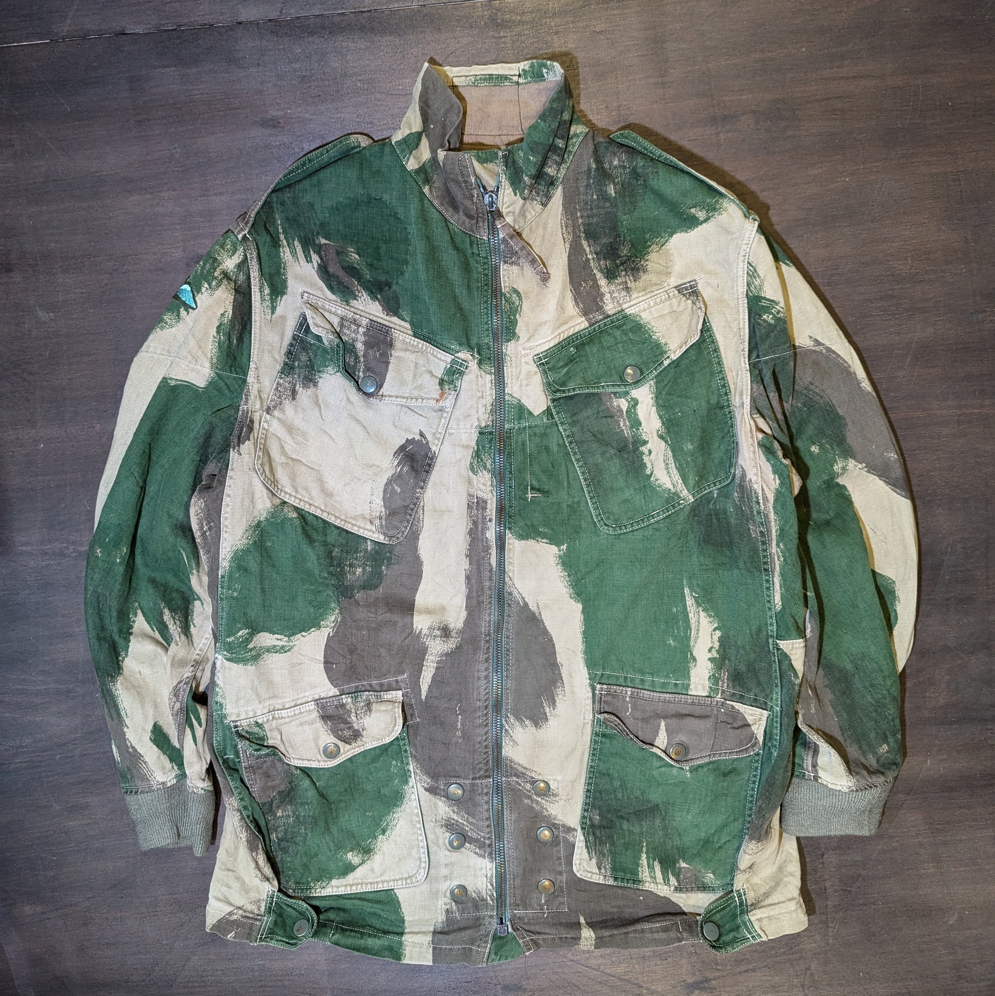 A true icon of British military style, the 1959 Denison smock was issued to RAF paratroopers and airborne forces at the height of the Cold War. With its bold brushstroke camouflage, heavy cotton construction, and signature “beaver tail” flap, it strikes the perfect balance between rugged utility and standout design.